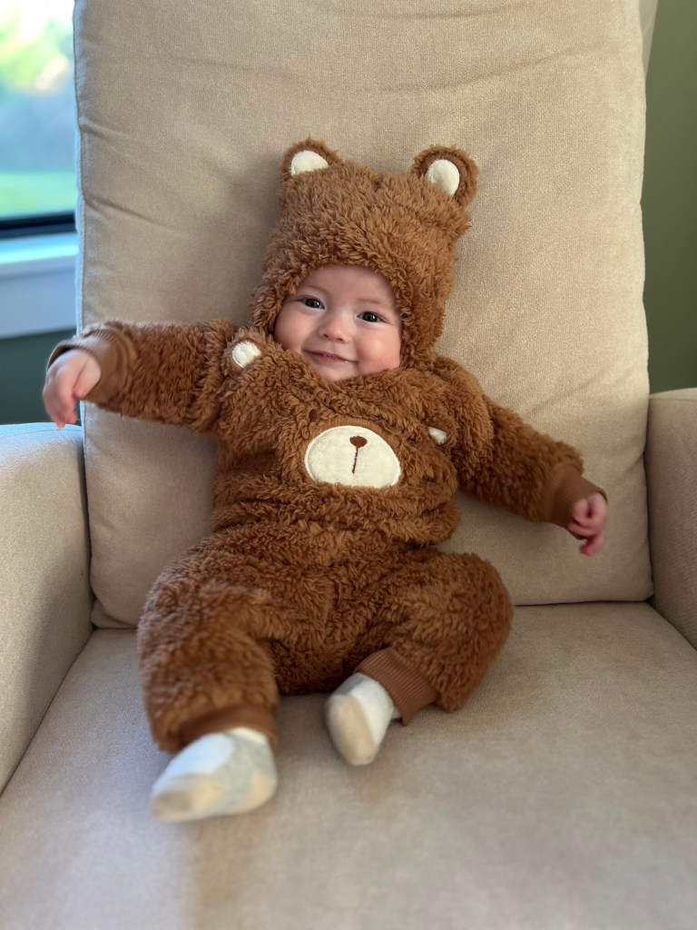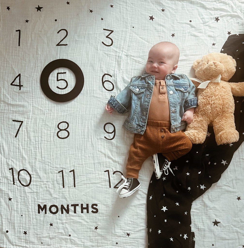 I measure how he’s doing in laughs, in full tummies, in long naps, in new skills, in smiles, and in moments – big and small.